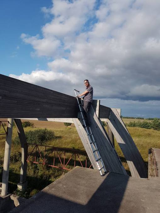 Högst upp, fyra våningar ner om stegen glider….
